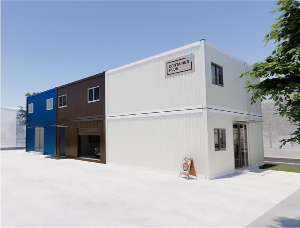 「コンテナオフィス」を起点として、「コンテナ店舗」「オフィス+ガレージ」「店舗+コンテナ倉庫」などラインナップ拡張中。コンテナ建築+スペースの有効活用として新しいサービスを開発・提供していく予定です。